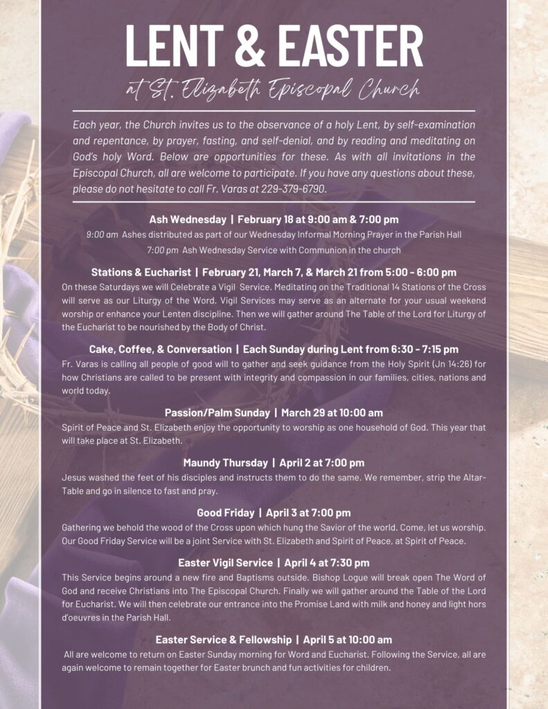 St. Elizabeth’s Episcopal Church is a place for members of the Richmond Hill-area to come together and worship as part of a loving community. We’re always happy to see you and warmly welcome visitors.